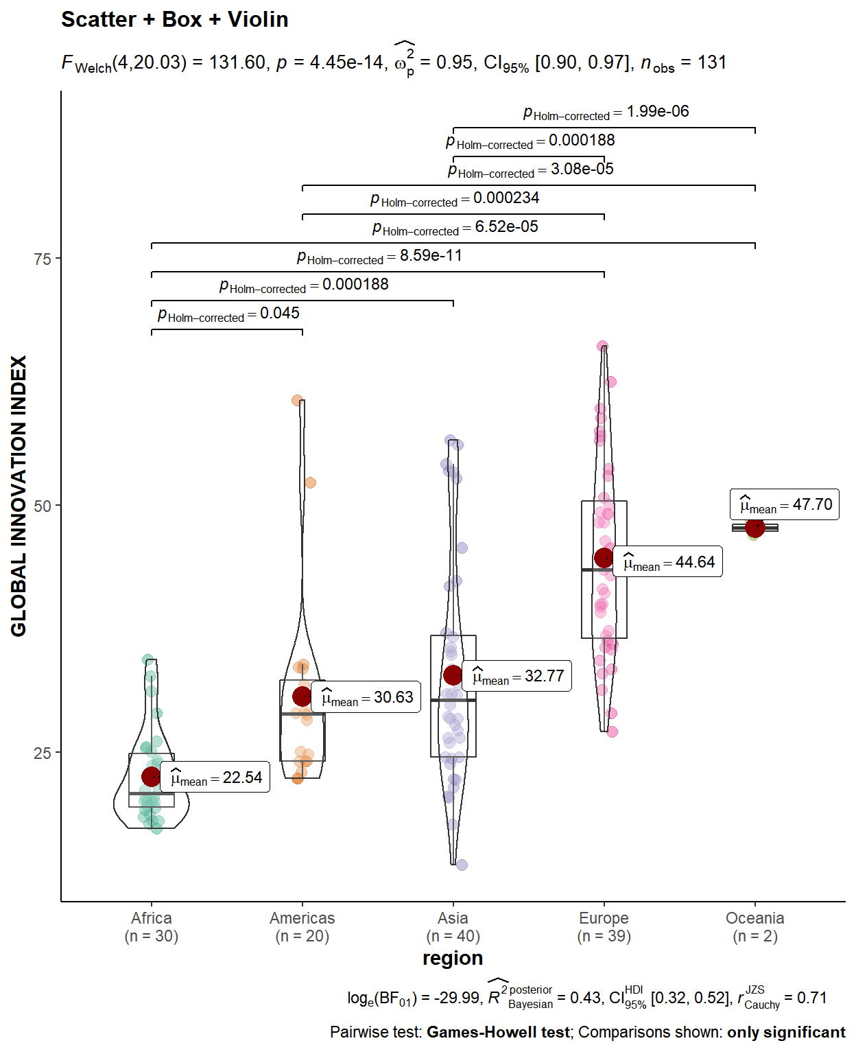 aes(x = region, y = `GLOBAL INNOVATION INDEX`)) +